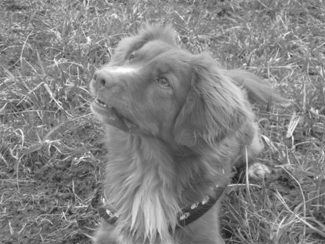 Alawei apportiert, schwimmt, rennt, springt und sucht mit viel Leidenschaft und Eifer. Auch zum Schmusen mit Mensch und Katze ist sie gerne bereit.